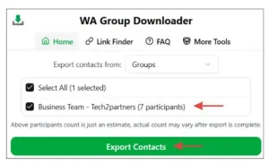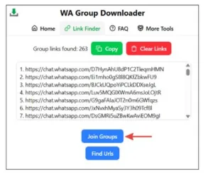 The tool also allows you to find and join WhatsApp group links while copying contacts.