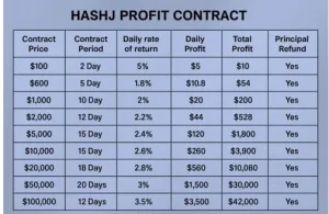 HashJ has various profit contracts that can serve all the types of investment, starting with entry-level miners down to professional traders.