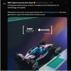 BlockDAG’s multi-year sponsorship with the BWT Alpine Formula 1® Team provides more than brand exposure. It connects blockchain with performance, engineering, and prestige, aligning BlockDAG’s identity with motorsport’s global stage. The partnership includes branding on race weekends, fan simulators, on-track interactive experiences, and curated Web3 activations.