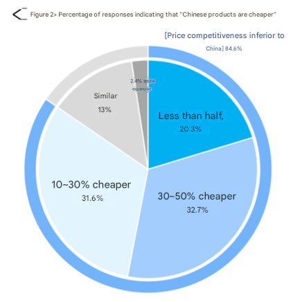 South Korean companies are not only lagging behind in competitiveness, but also struggling to compete on price. A survey showed that 84.6% of South Korean companies surveyed stated that their domestic products are more expensive than Chinese ones, with over half confirming that Chinese products are “over 30% cheaper.” Looking at industry categories , the price gap is particularly pronounced in the display, pharmaceutical and biological, textile, and apparel sectors . An analysis citing data from the United Nations International Trade Center found that Chinese semiconductors are approximately 65% of South Korean semiconductors, while batteries, steel, and textiles and apparel maintain price competitiveness at 73% , 87%, and 75%, respectively.