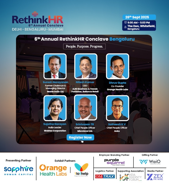 Delhi, India, 30th September 2025, ZEX PR WIRE, RethinkHR Bengaluru wrapped up on a high note, delivering a powerful day of insights, networking, and forward-thinking dialogue that brought the HR community together like never before with more than 25+ speakers, 300+ delegates and over 10 sponsors and partners. With thought-provoking keynotes and panels featuring industry leaders such as Suresh Narayanan, Former Chairman & MD, Nestle India Ltd, Nitesh Kumar, CEO, AJIO Business, Reliance Retail, Dhruv Gupta, Co-Founder, Orange Health Labs, Sujatha Narayan, India Leader, Wabtec Corporation, Srinivasan TR, CPO, Microland Ltd, Satheesh K V, CPO, Acko
